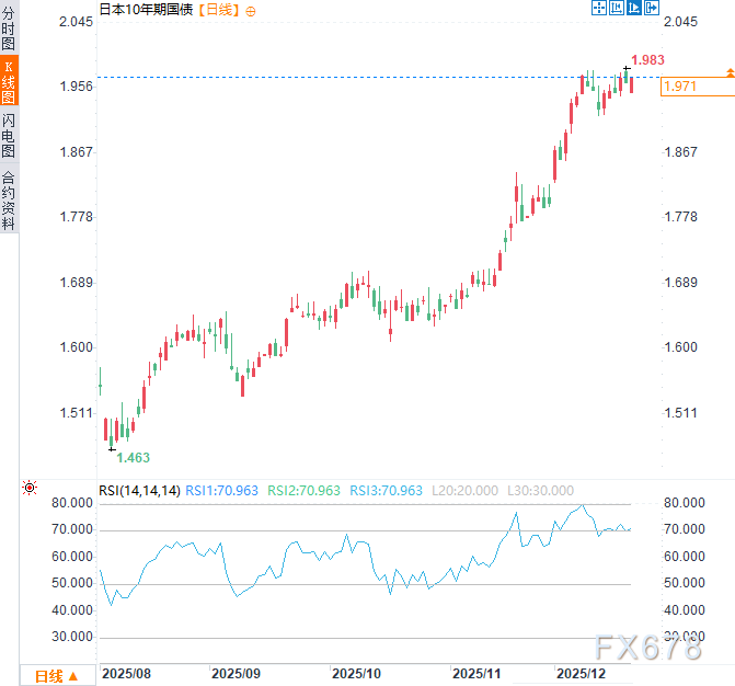 《日本经济新闻》本月初报道称,若基准收益率从当前约2%升至2.5%,日本借贷成本可能翻倍。目前日本10年期国债收益率在1.970%附近徘徊,接近前一交易日触及的18年高位(1.983%)。
