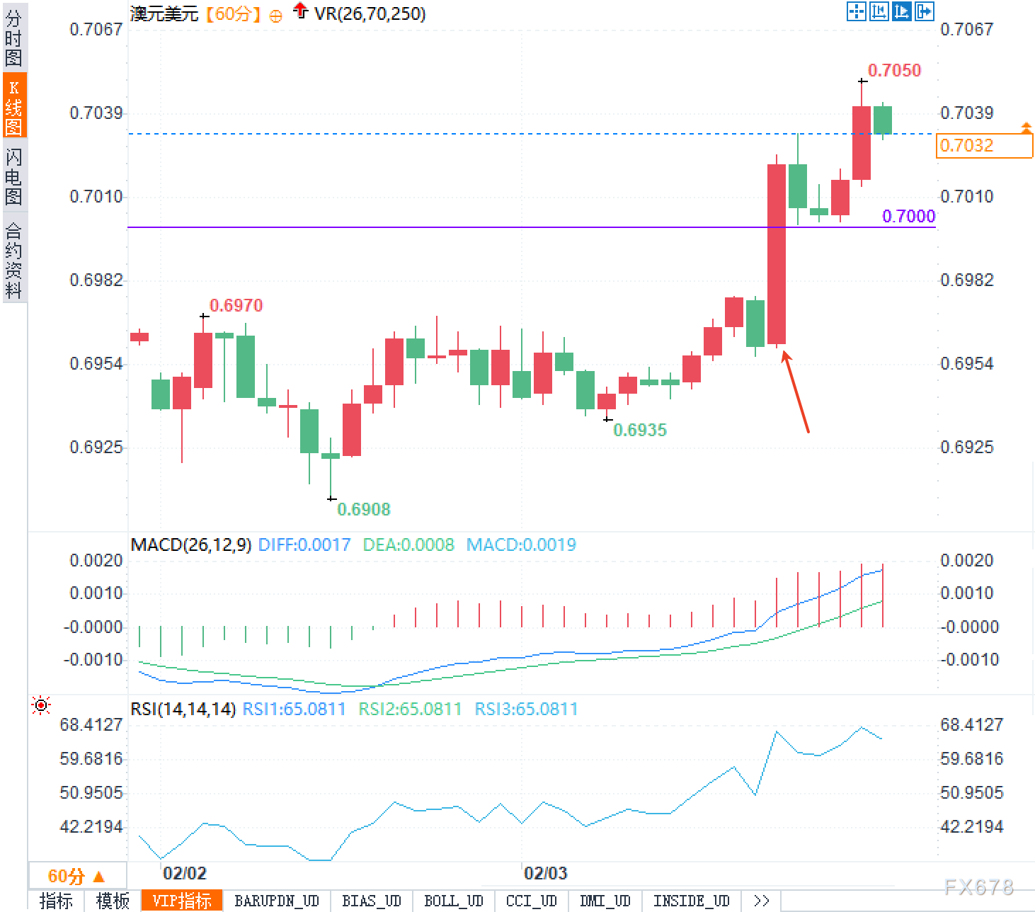 汇通财经APP讯——澳元兑美元走势明显加速,2月3日周二欧洲时段,汇价交投0.7030附近,距离此前在0.69关口附近的低点已反弹超过100点。这波上涨并非偶然,核心推动力来自澳洲联储的一次关键利率决议:按预期加息25个基点至3.85%,但真正让市场震动的是其后续的“前瞻指引”。官方释放出比预期更强硬的信号,暗示今年可能还要再加息两次,而此前市场普遍只计入了一次。这种“预期差”迅速点燃了外汇市场的敏感神经。